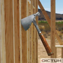 Hachette indestructible, pour l’utilisation en charpenterie. Lame mince Ă tĂȘte de marteau et arrache-clou. ProtĂšge-lame en nylon compris.