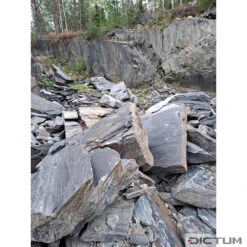 En Finlande, dans le village de Västilä, situé dans la commune de Längelmäki, le tailleur de pierre brise la roche primitive qui s’est formée à partir de fonds marins remontant à il y a 2 milliards d’années. Pendant des millions d’années, sous l’action de la forte chaleur et de la grande pression, la roche s’est peu à peu transformée en une pierre de grande qualité aux propriétés abrasives exceptionnelles. La pierre à aiguiser en phyllite se compose principalement de quartz, de feldspath et de mica. La qualité de la pierre varie beaucoup, c’est pourquoi toutes les pierres doivent être travaillées une à une à la main, de sorte que les matériaux plus durs et impurs puissent être triés et séparés de la pierre de qualité. Grace à la phyllite, même l’acier très dur peut encore être affûté et très bien aiguisé.