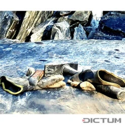 L’étui de ceinture haut de gamme, fabriqué à la main en cuir brut robuste, permet de garder la pierre à aiguiser naturelle à la ceinture (largeur maximale de ceinture : 38 mm) en toute sécurité et à portée de main. Étui en cuir de fabrication allemande, cuir brut naturel, bouton-pression en laiton nickelé. La forme ronde de la pierre naturelle permet de travailler avec des mouvements circulaires plutôt que linéaires, ce qui est plus pratique pour affûter une hache. La pierre à aiguiser conserve la hache en permanence affûtée et prête à l’emploi, la pierre naturelle assure un enlèvement fin de matière : il se forme rapidement une pâte à poncer et à polir qui affute la lame et lui procure une brillance éclatante. Avant usage, humecter la pierre avec de l’eau. Grain env. 1000.