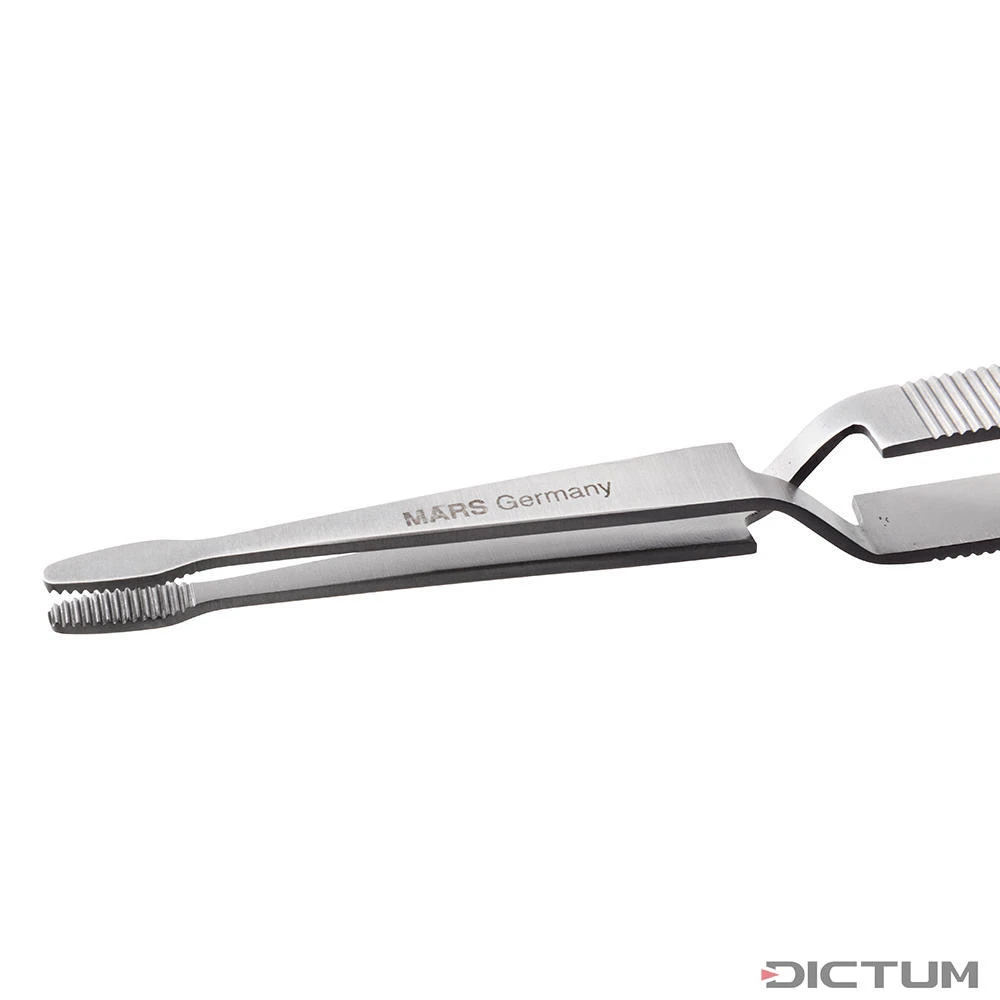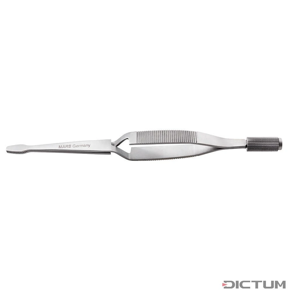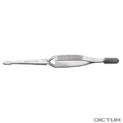 Pince Ă tiques en acier inoxydable. Le prĂ©-serrage de la pince maintient en toute sĂ©curitĂ© la tique qui peut facilement ĂŞtre retirĂ©e Ă l’aide de la poignĂ©e rotative. StĂ©rilisable.